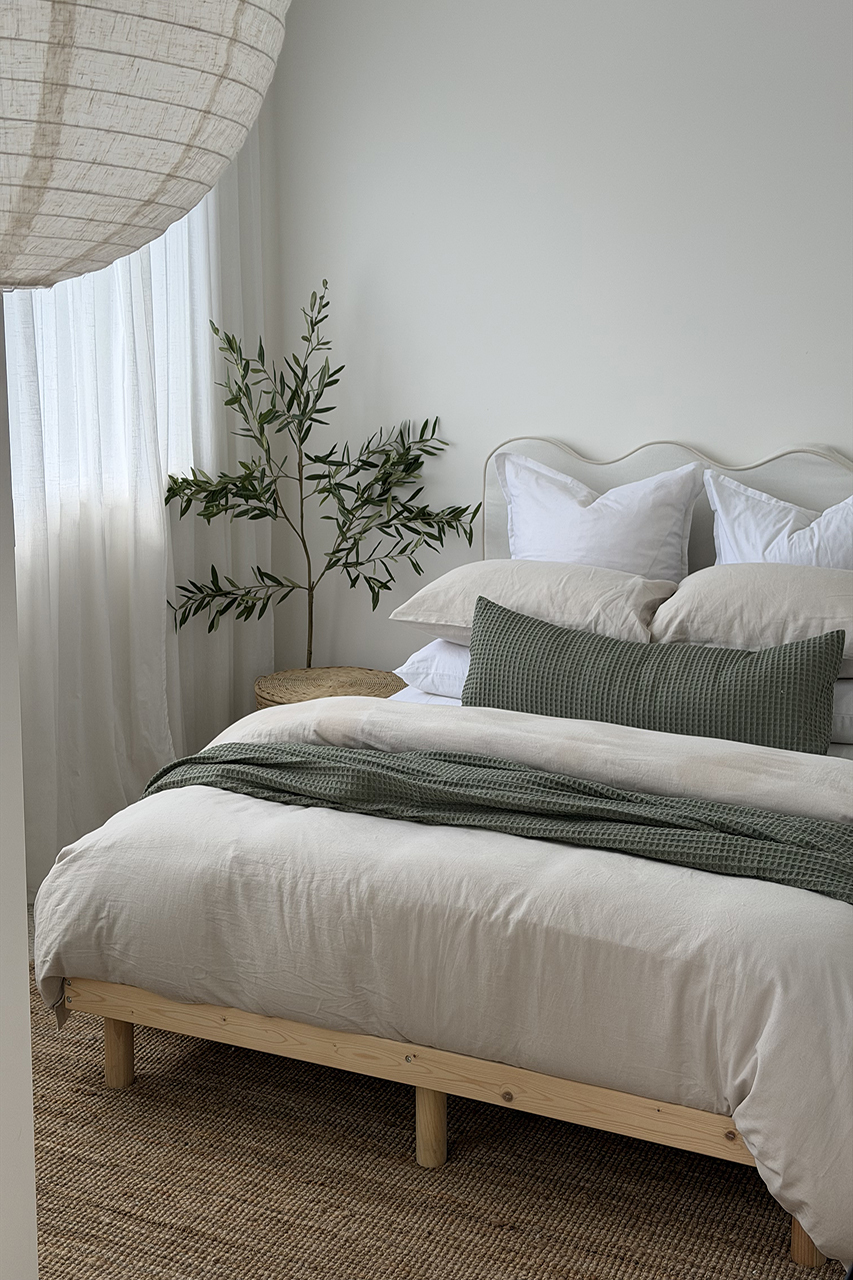 Style tip: Our Sereno French Linen & Cotton bedding in Stone or White makes the perfect base. It’s breathable, relaxed, and effortlessly chic.