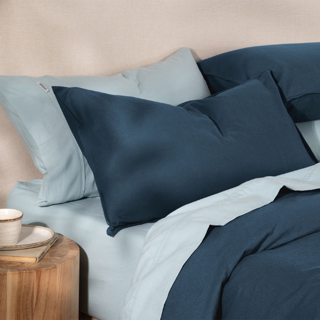 Brushed on both sides: This process lifts the cotton fibres on both the top and bottom of the fabric, making the sheets feel plush and velvety all over. It also helps trap warmth, keeping you toasty throughout the night